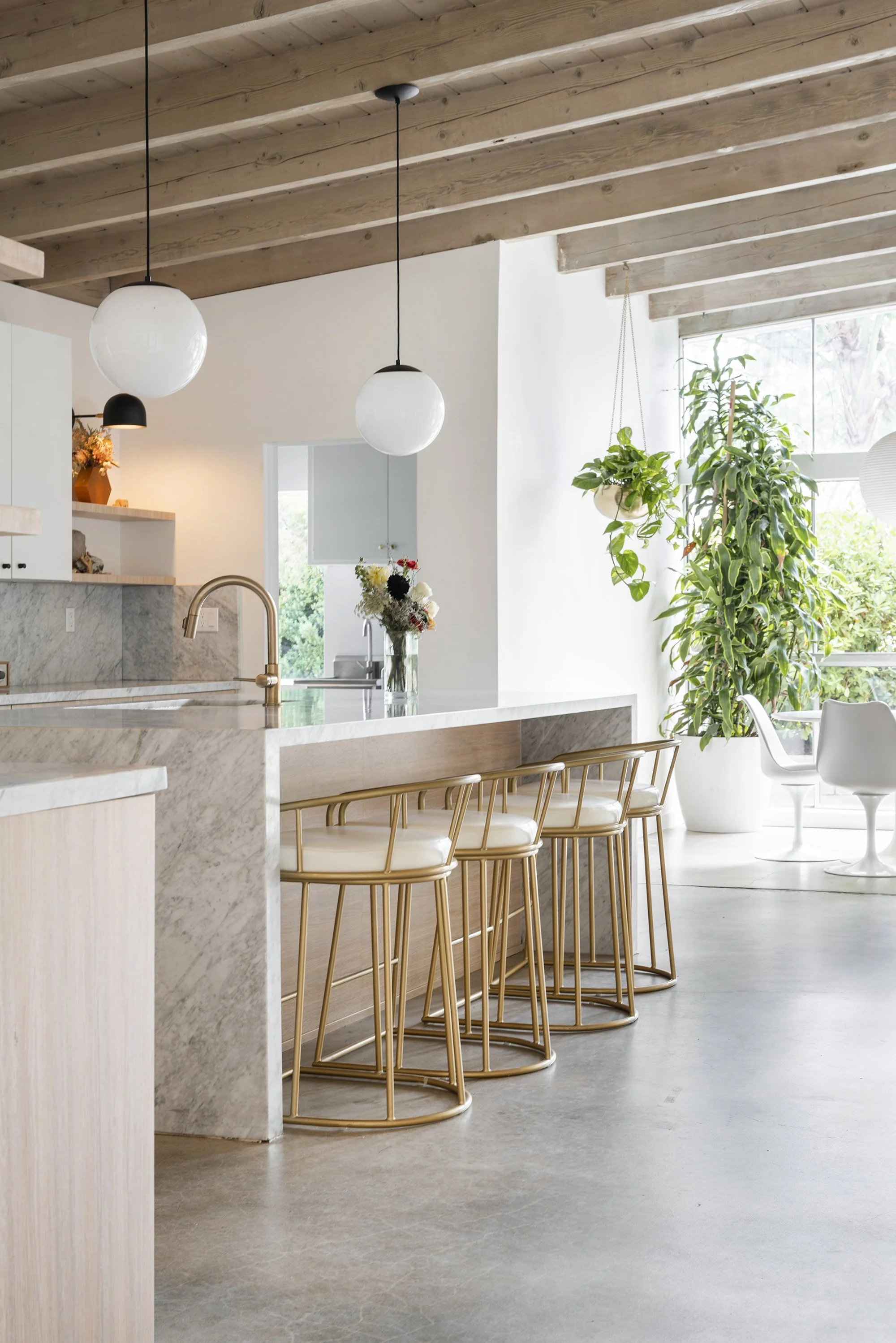 Iconic mid-century modern design c. 1957 awaits you in this distinctive architectural compound in Granada Hills. Located on a sprawling idyllic lot, this special property has modern finishes that seamlessly blend with original vintage character. Stepping into the main 4 BD/3 BA house, you are greeted with soaring beamed ceilings, polished concrete floors, and an open 2,633 Sq Ft floor plan. The primary suite features an amazing original stone accent wall, private patio and a one-of-a-kind encased glass shower. The living room, complete with massive original stone fireplace, flows into the sunny gourmet kitchen with gorgeous custom cabinetry, high-end appliances and views through walls of glass out to the backyard. 3 spacious bedrooms and 2 full bathrooms along with separate laundry/mud room complete the layout. Out back transports you to a true private oasis with drought tolerant landscaping, lush yard with mature fruit trees, and a large sunny pool. A detached and permitted 552 Sq Ft guest house complete with bathroom and kitchenette offers ample space to work from home, tackle creative projects or host overnight guests. Bonus cabana space with fire pit and original changing stalls for the pool make this rare find even more special. Located in the distinguished Knollwood Estates neighborhood of Granada Hills and less than 20 miles from downtown Hollywood, this one-of-a-kind property will inspire you daily.