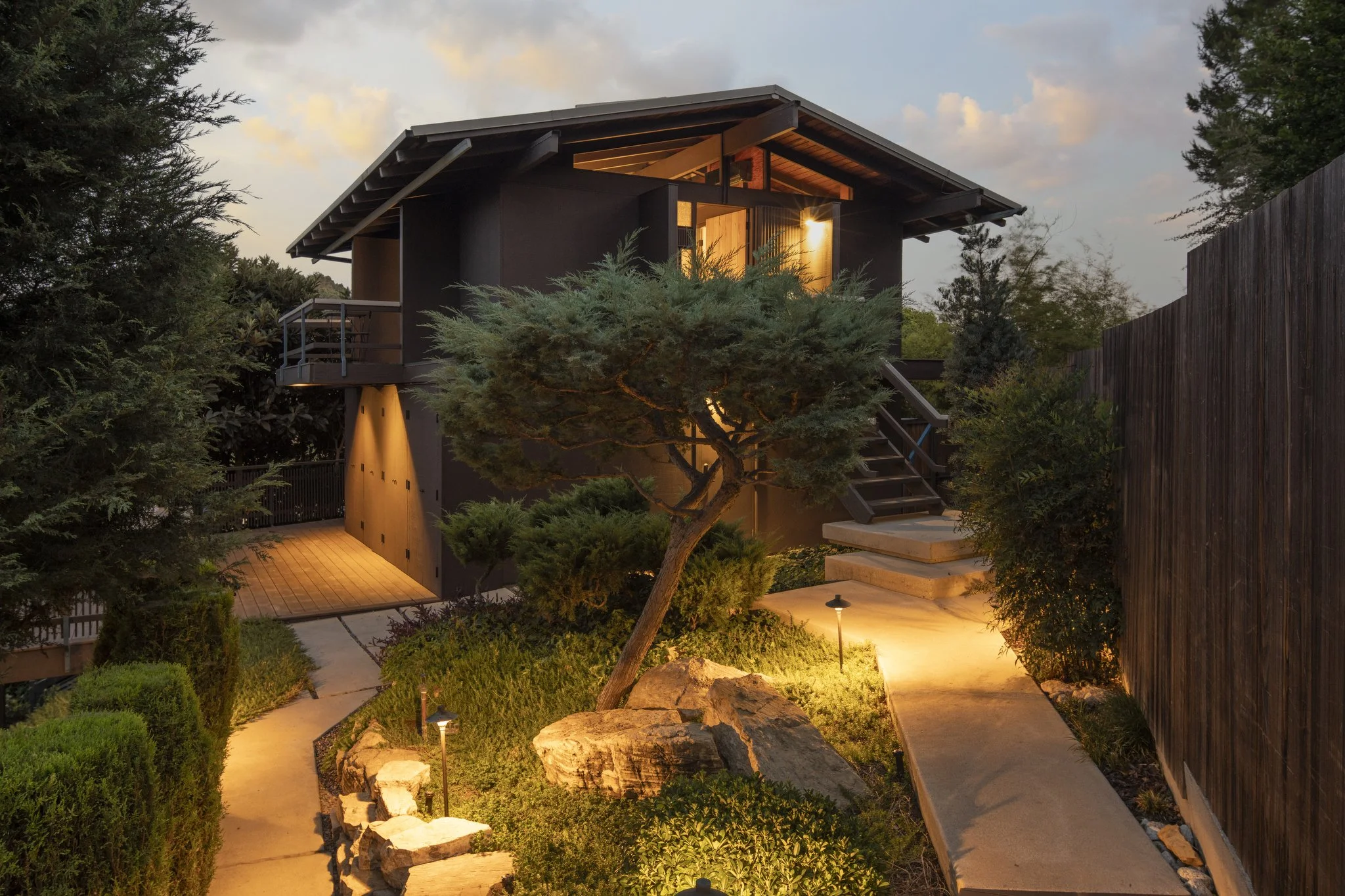 The Lowry Residence, 1973. Nestled on land acquired from the adjacent Van Pelt Estate, this mid-century modern home embodies the creativity and craftsmanship of an era when visionaries were shaping LA's architectural landscape. Renowned architect Dick E. Lowry, AIA, designed this stunning post-and-beam compound as his personal family residence on a breathtaking ridge in the coveted Franklin Hills of Los Feliz. Thoughtfully crafted with natural materials and sited with incredible views in all directions, the home embodies a timeless design that remains as striking as ever. Offering an immersive living experience with expansive outdoor spaces and true architectural integrity, this warm wood-clad residence has undergone a tasteful restoration by the current owners, staying loyal to Lowry's original modernist spirit. Designed with the care, artistry, and intention befitting a personal residence, it spans 2,449 sq. ft. across two levels, featuring three bedrooms and three bathrooms, and is rich with original elements full of character and warmth. Expansive beams, original woodwork, and walls of windows create a seamless flow to the outdoors, framing enchanting vistas of the Silver Lake hills. This home provides an unparalleled and transformative respite from city life, inspiring creativity and recharging the spirit. The upper-level living area offers light-filled openness, while the lower-level bedrooms serve as private havens. The primary bedroom is complete with a cozy fireplace, and the beautifully appointed primary bathroom adds a touch of luxury. A separate 421 sq. ft. studio, reflecting the home's original details and thoughtful design, features a grand view, kitchenette, and half bathroom ideal as guest quarters or a creative space. Lush gardens, serene pathways, and scenic seating areas make up the incredible 16,000+ sq. ft. lot, offering ample room to entertain and gather with friends and family. A large off-street driveway and garage parking for multiple cars, as well as ample storage throughout (including a workshop below the house), are just a few of the hard-to-find features for a home in the hills. Located in one of the east side's most desirable neighborhoods, in the heart of Los Feliz and Silver Lake's vibrant culture, the one-of-a-kind Lowry Residence awaits its next chapter.