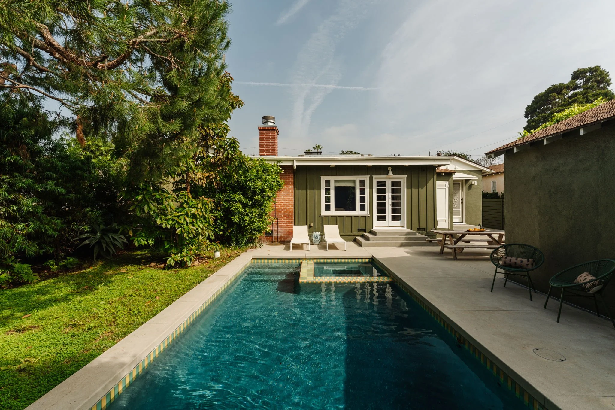 Classic 1950s mid-century traditional set on a quiet, tree-lined street in coveted La Tijera Village. This 2BD/2BA home has a functional layout and strong indoor-outdoor flow, retaining its original charm with added creative and colorful character updates throughout. A lush hedge adds privacy from the street and and leads into a mature cactus garden in the front yard. Inside is a sunny layout with hardwood floors great for entertaining and every day living. A private wing features two well-proportioned bedrooms and updated bathroom with artist-crafted tile. The vibrant kitchen offers a cheery breakfast nook and second bath. Out back is a true retreat with a newly added saltwater pool and spa, mature fruit trees, and a separate garden space in the back with raised planter beds. The detached garage has been converted into an incredible 410 SF bonus space with exposed beams and walls of storage perfect for a home office, studio, or flexible guest space with ADU potential. Ideally located in the heart of Inglewood's La Tijera Village and central to all the south/west side has to offer: walking distance to Sunday Gravy, The Serving Spoon, Two Hommes, and Ladera Park and easy access to LAX, Culver City, Kenneth Hahn Park, The Forum, Intuit Dome and SoFi Stadium and so much more.