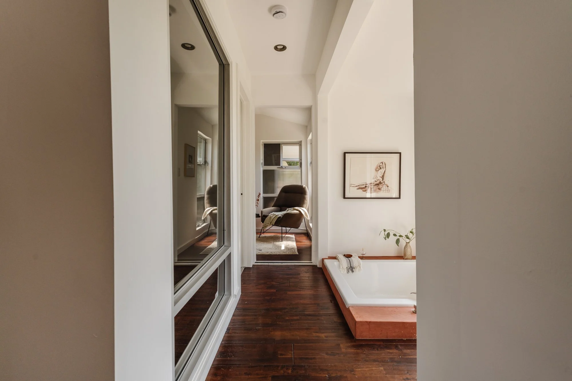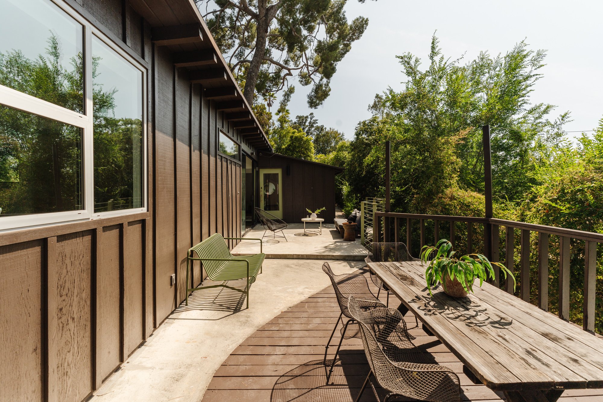 Rare opportunity to own in Baird Parka hidden enclave of historic cabins nestled in the El Sereno hills - are few and far between. Tucked behind a private gate and surrounded by 3 acres of lush trails, mature foliage, and panoramic views, this 1920s cabin is one of the Eastside's best-kept secrets. This serene residence, circa 1920, blends historic character with thoughtful modern touches. Beamed ceilings and hardwood floors throughout create warmth and timeless appeal, while expansive glass sliders connect the indoor spaces to a large entertaining deck perched above the trees. The kitchen pairs calming blue-hued cabinetry with updated appliances, leading to a dining area that opens seamlessly to the outdoors. The primary suite features a spacious closet and ensuite bath. One of the home's most captivating design moments is the onsen-style soaking tub nestled in a hallway alcove - a peaceful sanctuary framed by oversized windows and forest views. A second bedroom and bathroom complete the main layout, and a detached flex studio offers endless potential for a creative workspace, guest area, or storage. Located close to local hot spots including Debs Park, The Greyhound Bar, Zizou, Antigua Bread, Ascot Hills Park, Don Tonos, and more. Baird Park is a true sanctuary. Homes here rarely change hands, making this an extraordinary chance to claim a piece of one of L.A.'s most unique and secluded communities.